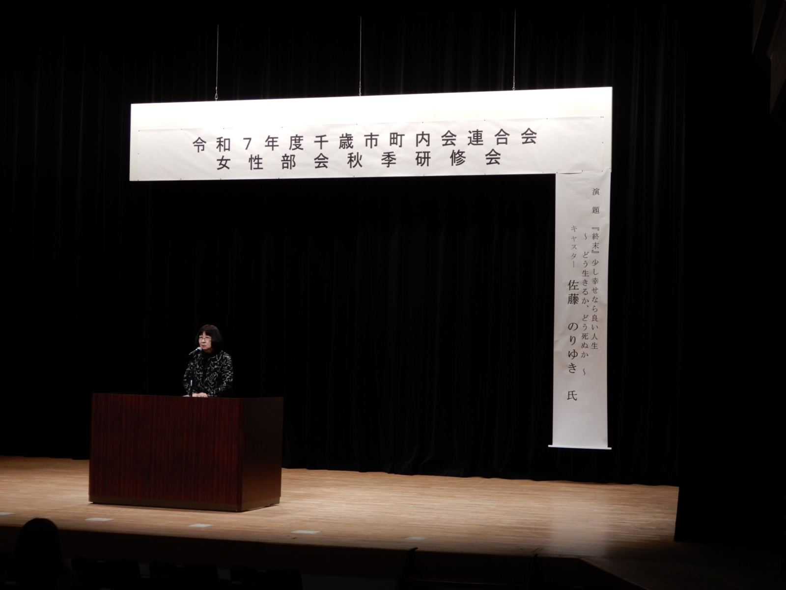 11月26日(水)北ガス文化ホール(中ホール)において、キャスターの佐藤のりゆき氏を講師にお迎えし、市町連女性部会(太田部会長)主催の秋季研修会を開催しました。
