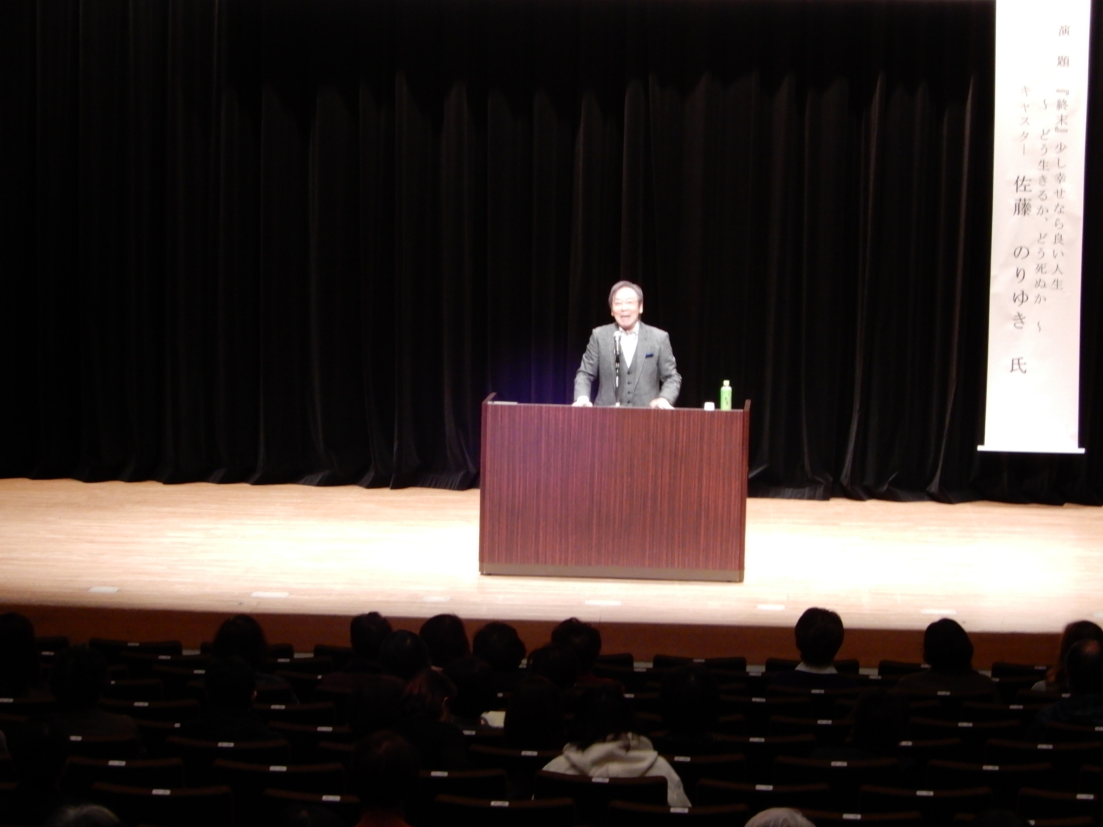 ”「終末」少し幸せなら良い人生”をテーマに、超高齢社会となった現在の社会背景の中で、健康の考え方や人生の組み立て方のヒントのほか、尊厳死についてのお話しをされました。